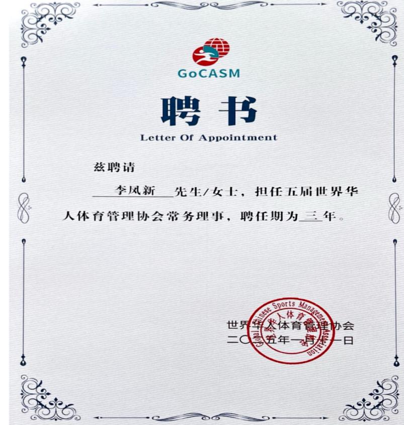 我院李凤新教授受邀参加2025世界华人 体育管理协会年会暨世界华人体育管理协会理事换届会议并担任常务理事