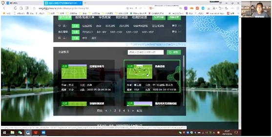 足球教研室的张威伟老师在腾讯会议进行直播授课,针对普修和专修班采用差异化教学方式,同时充分利用了足球学院建立的线上教学资源平台,对授课班级进行教学管理、资源配置、作业布置、师生互动,并制作了大量动图和视频作为教学资料,让教学过程更加直观和生动。