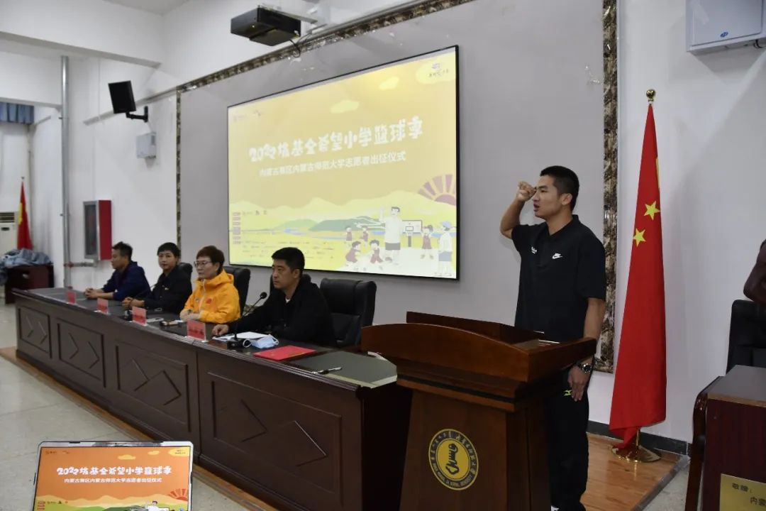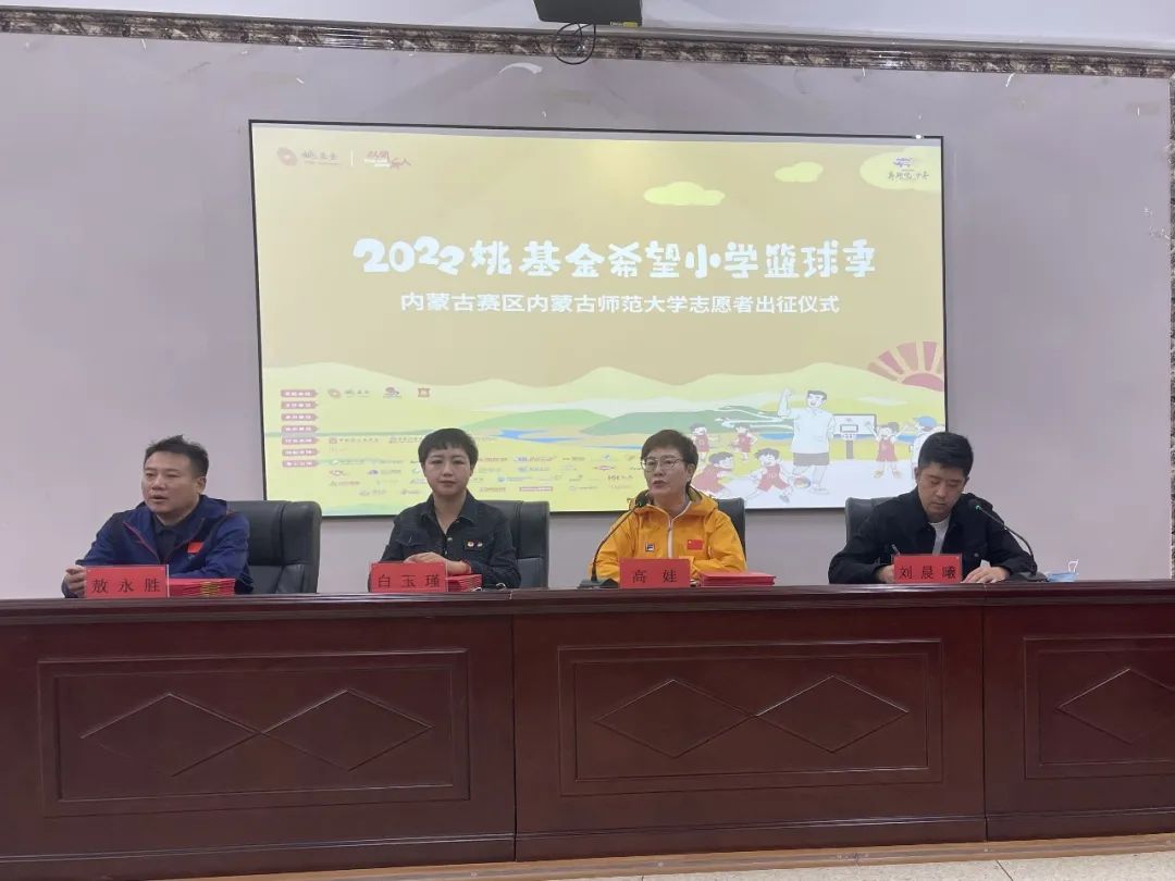 9月6日上午,“2022姚基金希望小学篮球季”支教志愿者出征仪式在体育学院举行,华体会平台,华体会(中国)院长高娃,华体会平台,华体会(中国)党委副书记、副院长敖永胜,内蒙古青基会项目管理部副部长白玉瑾及全体支教志愿者出席仪式,仪式由华体会平台,华体会(中国)团总支书记刘晨曦主持。