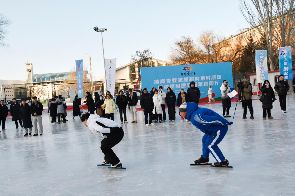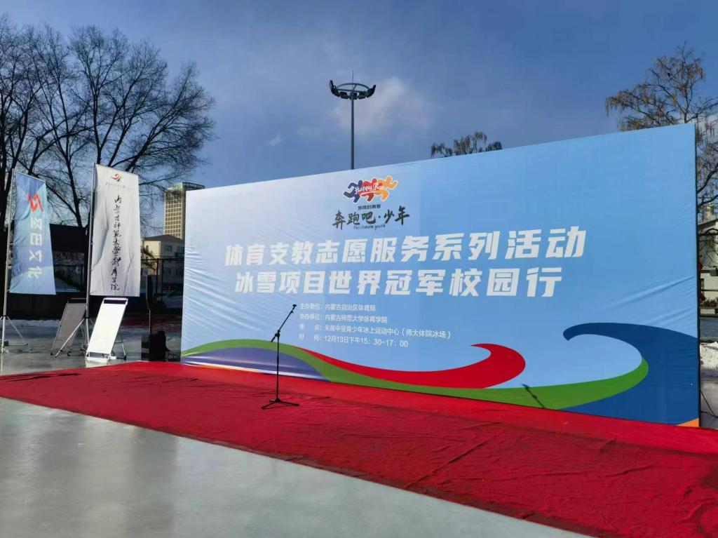 为激发广大学生对冰雪项目的兴趣,从世界冠军身上汲取奋进力量,推动校园冰雪运动发展,涵养校园体育文化,进一步弘扬体育精神,12月13日,由内蒙古自治区体育局主办,华体会平台,华体会(中国)承办的“‘奔跑吧·少年’ 2024 年体育支教志愿服务系列活动——冰雪项目世界冠军校园行”在内蒙古师范大学冰场举行,内蒙古自治区青少处处长史小平、华体会平台,华体会(中国)党委书记韩武、短道速滑世界冠军韩天宇、速度滑冰青奥世界冠军李岩哲以及内蒙古师范大学学生出席今天的活动。