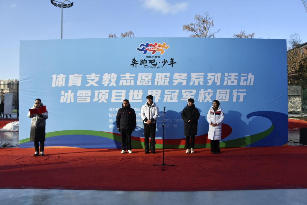内蒙古自治区青少处处长史小平发表了热情洋溢的致辞。她指出冰雪项目已成为冬季健身的主要方式,鼓励全体师生珍惜难得的机会,学习优秀运动员的运动技能和体育精神。